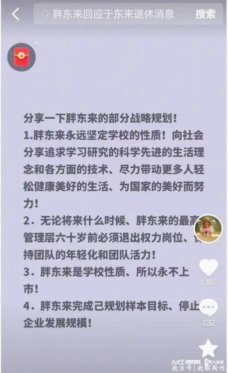 除了明确退休日期外,2月12日,于东来还发文称,“胖东来永远坚定学校的性质!向社会分享追求学习研究的科学先进的生活理念和各方面的技术、尽力带动更多人轻松健康美好的生活、为国家的美好而努力。”“胖东来是学校性质,所以永不上市!”“胖东来完成自己规模样本目标,停止企业发展规模”。